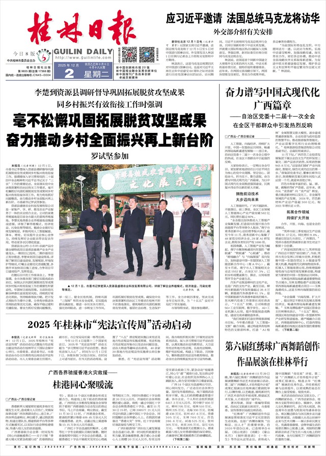本报讯(记者文新军 实习生陆浩坤)12月1日,2025年桂林市“宪法宣传周”活动启动仪式暨地方性法规主题宣传活动在桂林甲天下国际会展中心举行。市委常委、政法委书记、市委依法治市办主任蒋育亮出席活动并宣布活动启动。市人大常委会副主任周卉,副市长、市公安局局长莫一格等出席。