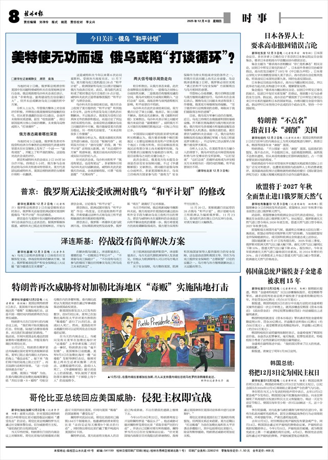 新华社莫斯科12月2日电(记者陈汀)俄罗斯总统普京2日在接受媒体采访时表示,俄罗斯无法接受欧洲试图对美国所提俄乌“和平计划”作出的修改。