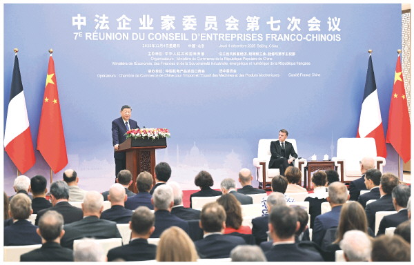 新华社北京12月4日电(记者董雪 冯歆然)12月4日中午,国家主席习近平在北京同法国总统马克龙共同出席中法企业家委员会第七次会议闭幕式并致辞。