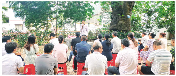 酸枣树下上党课,宣讲移风易俗内容。(全州县委宣传部供图)