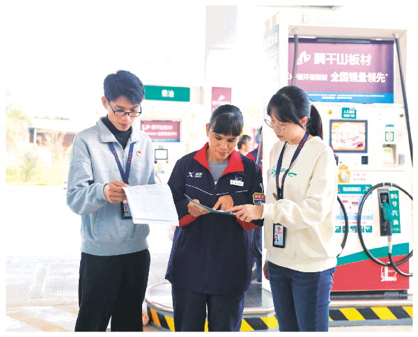平乐县纪委监委聚焦“四风”隐形变异问题,组织专项督查组前往加油站,对公务车辆加油记录进行现场核查。图为督查组人员核验加油台账、检查车辆信息及消费明细。