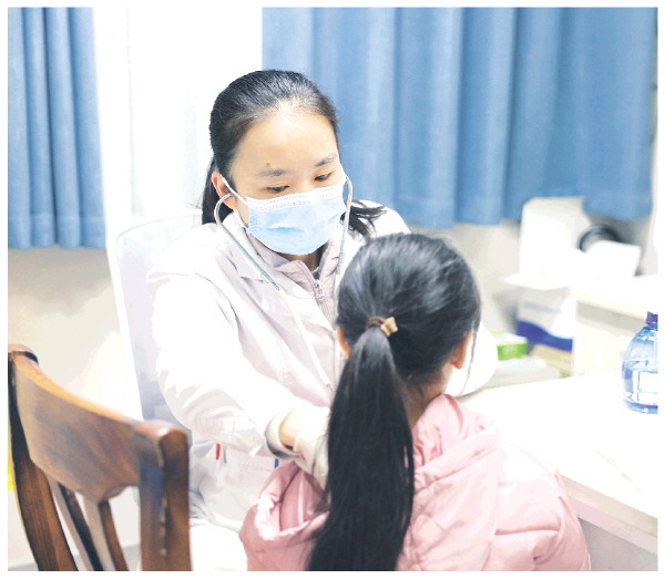 在市妇幼保健院儿科诊室内,医生为小朋友看诊。