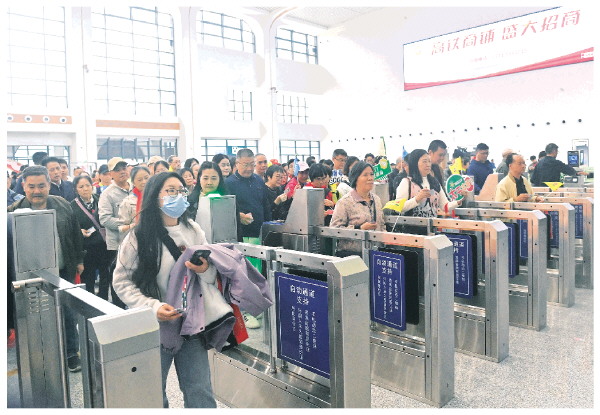 12月5日,旅客在凭祥东站通过检票口准备上车。 新华社记者陆波岸 摄