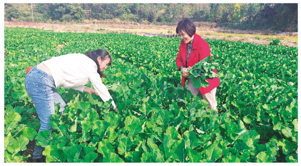 12月2日,在日霞村的种植基地里,连片的板蓝根油菜叶肉饱满、色泽鲜亮,在微风中如绿浪起伏。种植户正忙碌地进行采收,准备将新鲜的油菜供应市场。据了解,板蓝根油菜是由油菜与菘蓝(俗称板蓝根)远缘杂交选育而成,兼具板蓝根的药用价值与油菜的清爽口感,属于“药食同源”特色蔬菜,近年来市场需求持续增长。