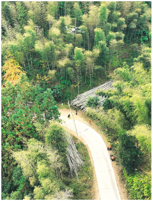 今年7月,村里引进专业无人机运输团队后,竹产业运转节奏有了新变化。村民骆茂林家中有20余亩竹山,他对这一变化感受真切:“往年最头疼的就是找人搬运,经常因为等人工被迫停工。现在有了无人机,就像装上了一条‘空中传送带’,从砍伐到运输再到销售,整个链条都顺畅了。”
