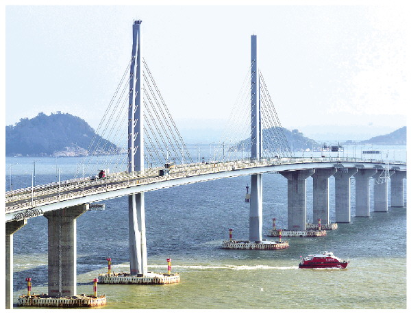 ▲2025年10月19日,客船驶过港珠澳大桥九洲航道桥(无人机照片)。