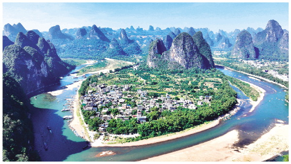 阳朔县兴坪镇渔村党支部书记唐存学见证着家乡的绿色蝶变:“早年漓江生态受损,如今水质清澈见底,景区上空再无电线纵横,‘零碳村’招牌带我们走上生态美、百姓富的新路。”