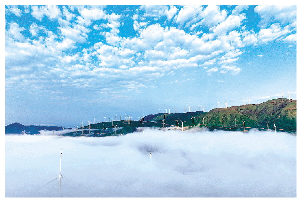 桂林新能源快速发展,能源结构向“新”向“绿”转型。图为兴安县摩天岭风电场。