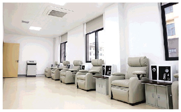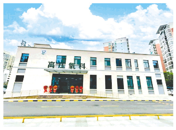 高压氧科所在的高压氧楼建筑面积达1330.76平方米,整体布局科学合理,划分为诊疗区、候诊区与设备保障区,为患者打造了舒适便捷、人性化的就医环境,成功填补了本区域规模化、智能化、一站式高压氧治疗的空白。