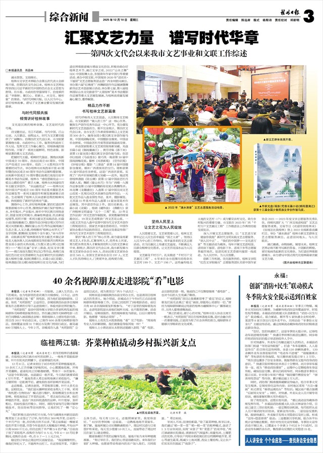 到桂林录制专题节目   本报讯(记者张婷婷)12月8日至9日,由自治区政协办公厅与广西广播电视台联合制作的全媒体协商平台《桂在协商》栏目来到桂林市秀峰区桂花公社,聚焦桂林桂花产业创新发展进行录制拍摄。自治区政协常委、市政协副主席、九三学社桂林市委主委卢全喜参加节目录制。