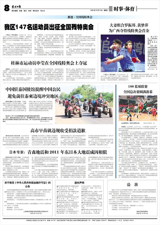 我区147名运动员出征全国残特奥会   广西云-广西日报讯(记者石红星 见习记者张杰)12月8日至15日,全国第十二届残运会暨第九届特奥会分阶段将在粤港澳三地举行。广西派出了216人代表团参赛,其中包括147名运动员。