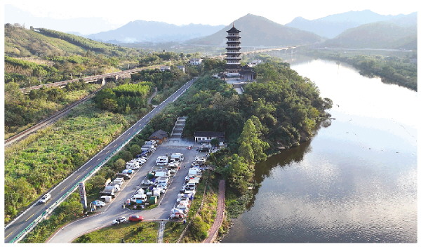 文明塔下,不少房车在此汇聚。 秦文杰 摄