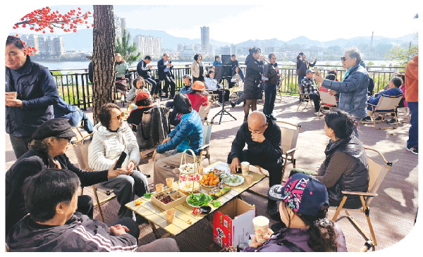嘉路康养中心(永福店)组织店内旅居长者举办冬日围炉煮茶户外活动。刘玉婷 摄