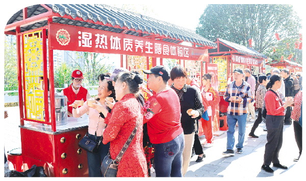 第十四届桂林永福福寿节之药膳集市活动在状元坊内举行,县中医院研究出九种体质养生膳食汤菜(茶饮)供市民及游客朋友免费品尝,向大众普及和推广中医膳食养生知识。