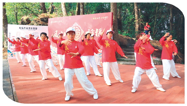 老年大学的学员在福寿节凤山祈福活动中表演打太极。 王琰 摄