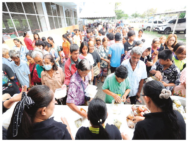 12月10日,民众在位于泰国沙缴府的一处避难所排队领取食物。