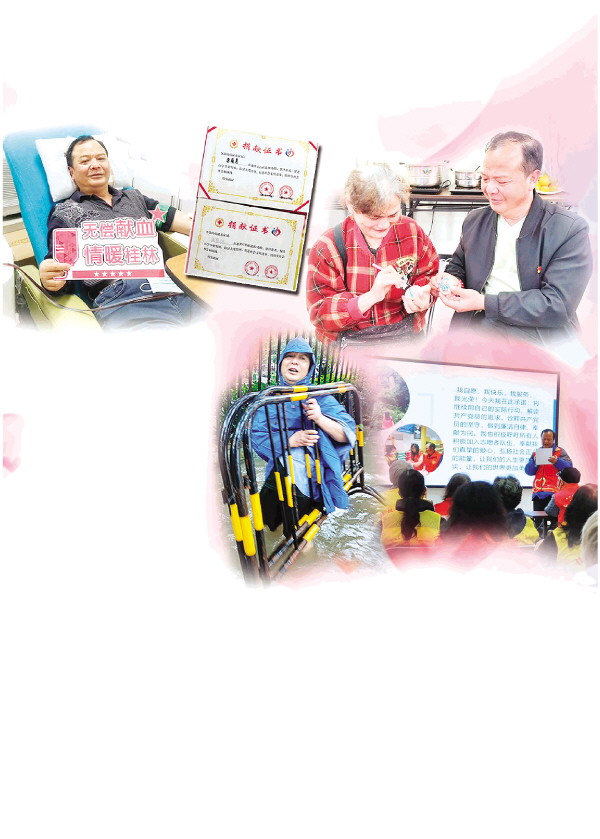 多年来,他多次获评七星社区优秀志愿者、桂林市红十字会优秀志愿者,还获评七星区学雷锋志愿服务先进典型等,这些荣誉证书被他整齐地摆放在抽屉里。与他共事多年的志愿者万霞说:“只要是需要他的时候,他都在。他总说自己做的都是小事,但正是这些小事,汇聚成了大爱,感染着我们每一个人。”