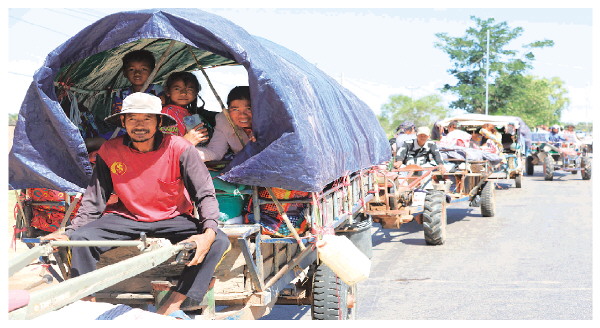▲12月15日,人们从柬埔寨暹粒省的一处避难所撤离。