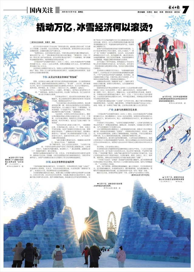 近日召开的中央经济工作会议将“坚持内需主导,建设强大国内市场”作为重点工作部署。正值雪季,从北方到全国,从冬季到四季,冰雪经济的火热正拉动着消费新场景、区域新发展以及产业新生态。
