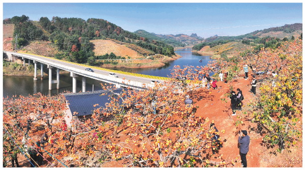 图为游客在二塘镇新华村“柿乡缘”特色柿园拍照、游玩。据了解,今年柿子成熟以来,该柿园旺季日均接待游客量超300人。