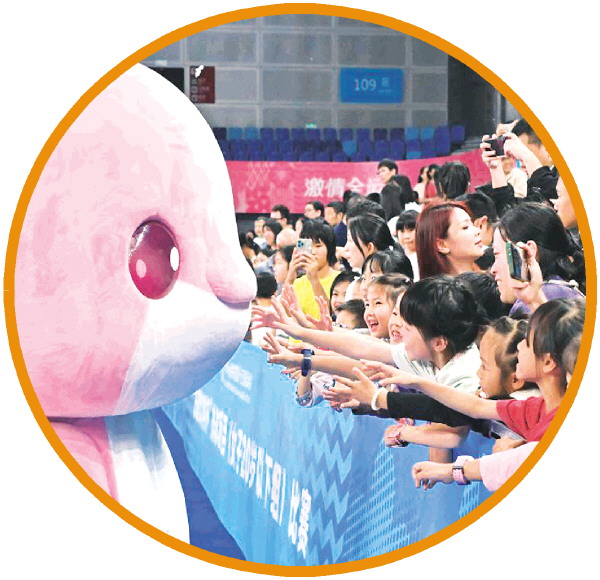 ▲11月16日,吉祥物“乐融融”与观众互动。