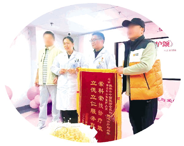 “是你们让我重新听见生命的旋律。”卡佳特意让家人制作了一面锦旗送给肿瘤科医护人员,锦旗上的“立德立仁服务真”七个字,既是对科室服务的高度认可,更成为病房人文关怀真挚的阐释。