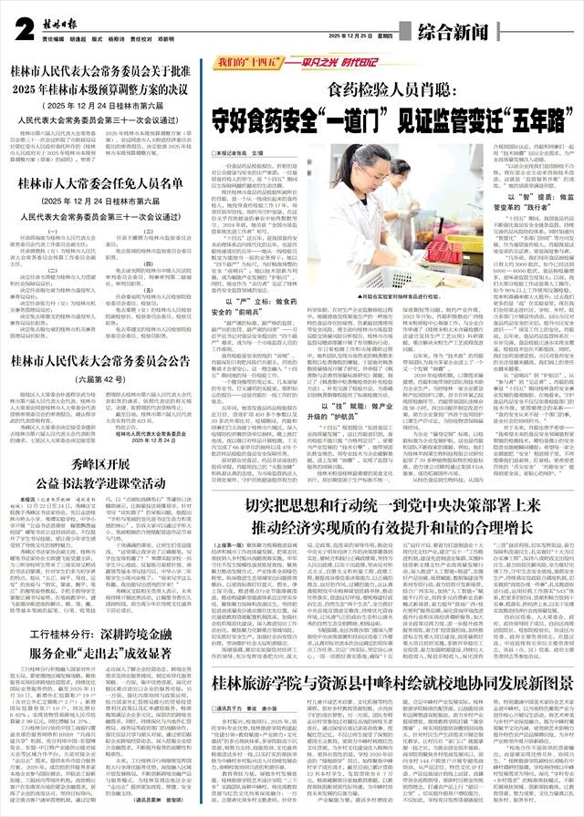 “十四五”这五年,是我国食药安全治理体系迈向现代化的五年,也是肖聪快速成长的五年——她从一线检验员蜕变为能独当一面的业务骨干;她以“四个最严”为标尺,当好精准预警的安全“前哨兵”;她以技术创新为利器,成为赋能产业发展的“护航员”。同时,她也作为“亲历者”见证了桂林食药安全监管领域的变迁。