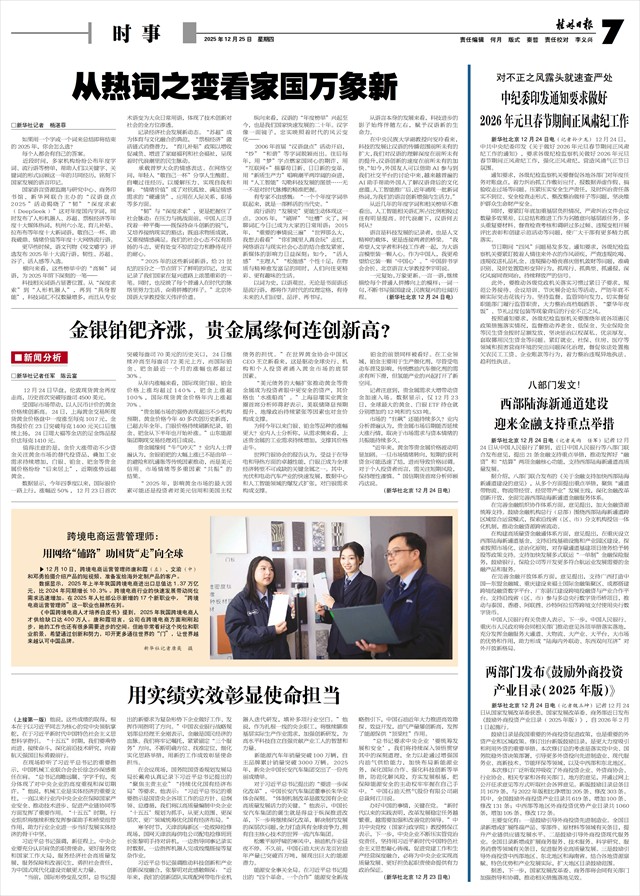 陈刚强调,明年要重点抓好十方面工作:聚焦聚力发展壮大智能经济,坚持“北上广研发+广西集成+东盟应用”发展路径,加快建设中国—东盟国家人工智能应用合作中心,布局建设人工智能基础设施,深入实施“人工智能+”行动,深化人工智能与制造业融合,在“A超”联赛基础上合办“百业千企AI转型联合大赛”,让AI成为推动广西产业升级、企业转型的重要引擎。聚焦聚力构建以制造业十大产业为支柱的现代化产业体系,科学谋划十大产业的空间布局和培育路径,实施制造业重点优势产业补链强链延链行动、先进制造业集群培育行动,重点建设南丹关键金属高质量发展综合试验区,加快生产性服务业扩能提质,大力发展现代特色农业。聚焦聚力扩大投资和消费,全力优化投资结构,提高投资效益,持续推进重大产业标志性工程等项目建设,深入实施提振消费专项行动,着力打造“人工智能+消费”等新业态新模式新场景,打造“东盟出产+广西集散+中国畅销”新链路,充分释放服务消费潜力。聚焦聚力推进改革攻坚、激发内生动力,围绕人工智能发展、科技创新等重点领域,深化推进要素市场化配置等基础性改革,带动其他重点领域改革协同集成,积极主动融入全国统一大市场,推动民营经济高质量发展。聚焦聚力科技创新引领培育发展新质生产力,一体推进教育科技人才发展,深入实施科技创新支撑支柱产业高质量发展等行动,强化关键核心技术攻关,加快建设面向东盟的科技创新合作高地。聚焦聚力发展向海经济、扩大对内对外开放,坚定不移优先发展北部湾经济区,打好港口牌、东盟牌、产业牌、人工智能牌和生态牌,全力确保平陆运河建成通航,高水平规划建设平陆运河经济带,推进自由贸易试验区提升战略,全面对接融入粤港澳大湾区,加快贸易投资一体化、内外贸一体化发展。(下转第二版)