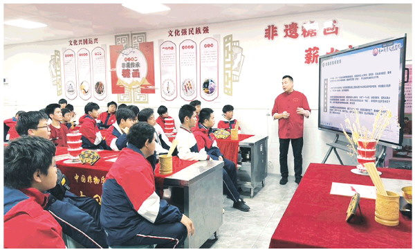 ▲陆海青正在给孩子们介绍关于桂林糖画的历史故事。