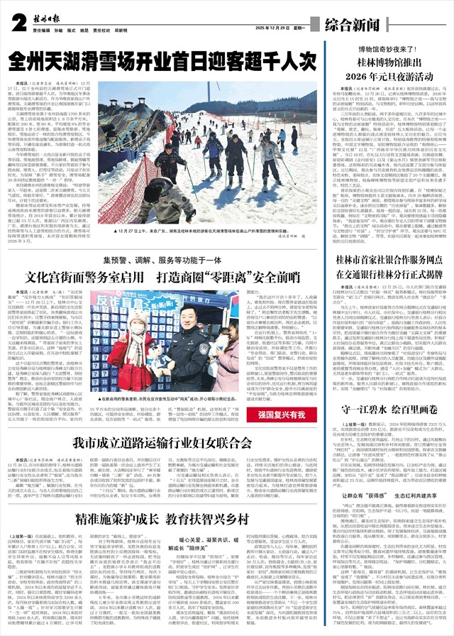 校园安全有保障。桂林全市设立“护学岗”,每天上下学期间安排公安民警在校门口轮值,守护学生安全;发挥家长学校作用,邀请法治副校长进校开展反诈、防校园欺凌等主题教育,2024年以来累计开展讲座2000多场次,覆盖家长100多万人次,筑牢了校园安全防线。