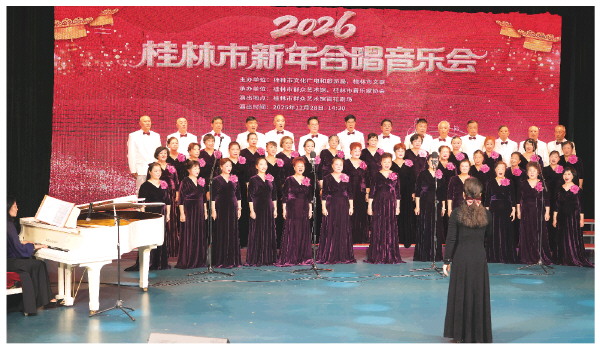 12月28日,由桂林市文化广电和旅游局、桂林市文联主办,桂林市群众艺术馆、桂林市音乐家协会承办的2026年桂林市新年合唱音乐会,在市群众艺术馆百花剧场举行,为市民带来一场精彩的艺术享受。
