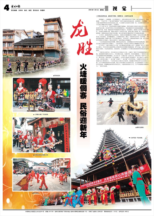 广南村党支部书记、村民委员会主任蒙永凡介绍,火塘在广南村不仅是取暖煮饭的设施,更是精神归属和文化中心,村民围坐交流、化解矛盾、传承非遗歌谣。广南村的火塘文化是侗族传统的重要载体。自2020年“火塘计划”启动以来,该村采用“保护中心设计、群众出地、政府资助”的共建模式,对全村火塘进行改造提升,现已建成11座特色火塘,成功将火塘从“一家之暖”拓展为“一寨之聚”的文化阵地,为侗族文化传承与村寨复兴注入鲜活活力。“本次活动以火塘文化为纽带,深度融合传统民俗与元旦喜庆元素,以节为媒营造浓厚节庆氛围。既让古老非遗在当代焕发生机,也为游客提供了沉浸式的民俗体验,更凝聚起侗乡群众传承文化、共建家园的强大合力,为千年侗寨振兴赋能助力。”蒙永凡说道。