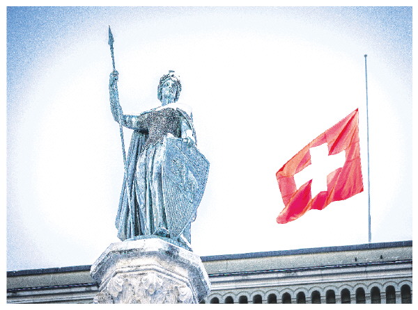 1月3日,在瑞士首都伯尔尼,瑞士联邦议会大厦降半旗,悼念酒吧火灾事件遇难者。
