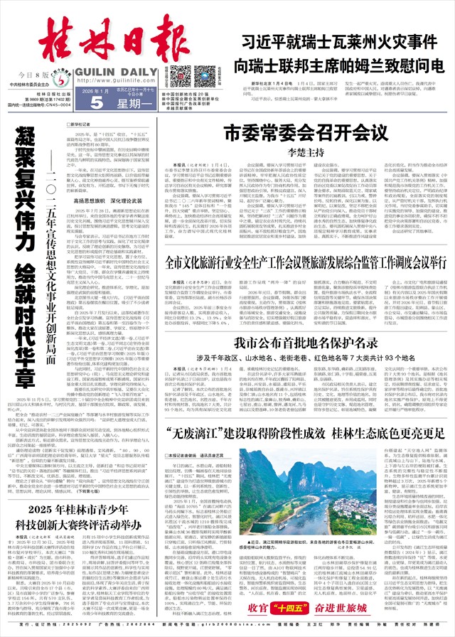 会议强调,要深入学习贯彻习近平总书记二〇二六年新年贺词精神,聚焦我市“145”总体目标和“一个提升、四大突破”重点举措,坚定信心、乘势而上,加快推动经济社会高质量发展,进一步全面深化改革开放,切实保障和改善民生,扎实做好2026年各项工作,奋力谱写中国式现代化桂林篇章。