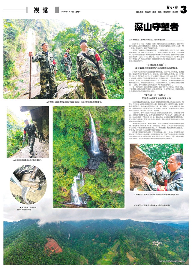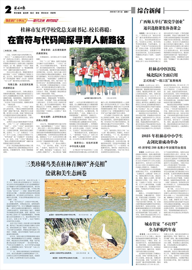 绘就和美生态画卷   本报讯(记者周子琪 通讯员李文嵩)1月3日,桂林市林业和园林局与广西师范大学生命科学学院监测团队在灵川县青狮潭保护区开展越冬鸟类专项监测时惊喜发现,候鸟型国家一级保护野生动物东方白鹳、中华秋沙鸭与本地“原住民”——国家二级保护野生动物黑鸢在此齐聚。三类珍稀鸟类栖息的珍贵影像被清晰记录,成为桂林生态环境优良、宜居宜栖的生动注脚,尽显世界级旅游城市的生态“待客”之道。