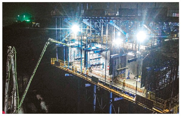 为攻克技术难题,项目团队创新采用“双挂篮同步施工+中间联结加固”方案,通过216组高强度钢绞线将两套挂篮系统连为整体,将位移误差控制在2毫米内。同时,引入线性监测系统,实时调整施工参数,确保梁体线形精准。“这套系统就像为大桥装上了‘智慧中枢’,不仅解决了宽桥面施工受力平衡难题,还将效率提升30%。”许京京说。