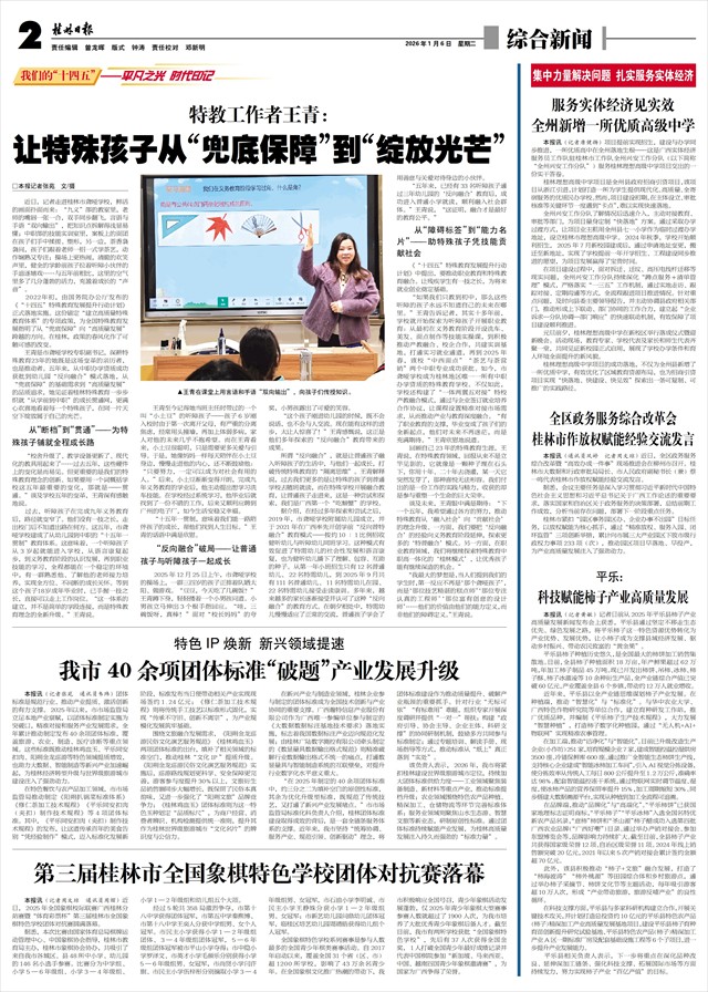 谈及未来,王青眼中满是期待:“下一个五年,我希望通过各方的努力,推动特殊教育从‘融入社会’向‘贡献社会’的理念升级。一方面,我们要把‘反向融合’的经验向义务教育阶段延伸,探索更多的‘特普融合’模式。另一方面,在职业教育领域,我们将继续探索特殊教育中职高一体化的‘桂林模式’,让优秀孩子能有继续深造的机会。”