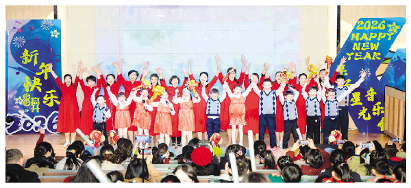 随着全场齐声倒数,新年钟声在师生和家长们的期盼与热情欢呼声中敲响。最后,全体师生、家长共同唱响《明天会更好》,悠扬的歌声承载着对未来的无限憧憬,也为本次活动画上了圆满句号。桂林市复兴学校将持续深化家校社融合机制,不断拓展美育育人内涵,共同谱写学生健康成长、教育高质量发展的崭新篇章。(陈雅婷)