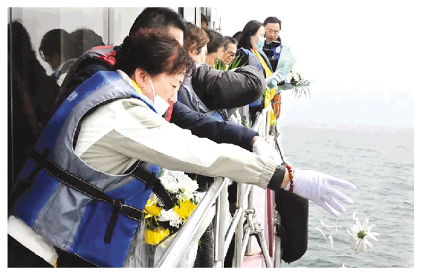 ▲2024年3月,逝者亲属在山东青岛参加海上追思活动。(图源:新华社)