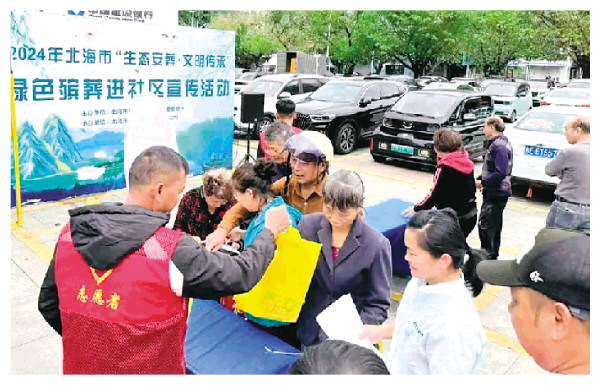 ▲2024年10月28日,北海市殡葬管理所在海城区茶亭路社区开展移风易俗主题宣传活动,进一步推动移风易俗,倡导文明节俭、生态环保的绿色文明殡葬新风尚。 (图源:北海市民政局网站)