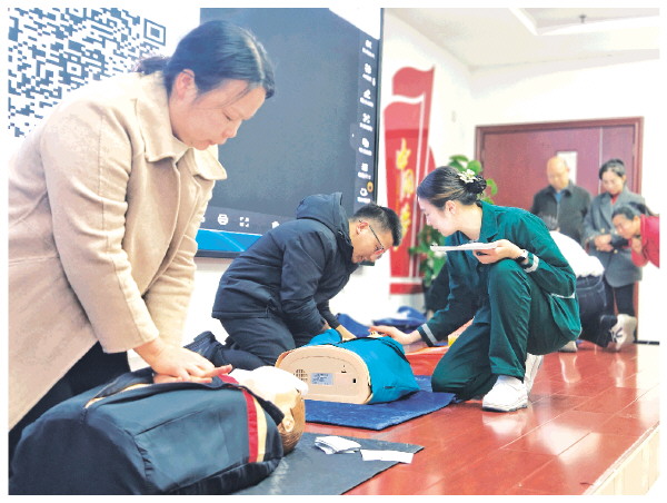 ◥恭城瑶族自治县纪委监委在监督执纪执法工作中,始终将办案安全作为纪检监察工作的生命线。通过组织开展应急处置能力培训班、现场演练等方式,提高有效应对突发事件中的自救互救能力。图为该县纪检监察干部通过“理论实操+持证上岗”方式,在讲师指导下开展心肺复苏急救演练。