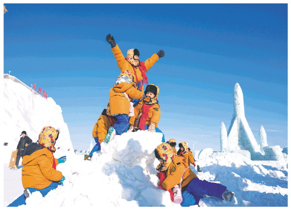 ▲1月14日,广西“小砂糖橘”在位于吉林长春的长春冰雪新天地玩雪。