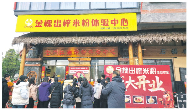 冬日的晨光里,全州城北新区全街“金槐出榨米粉体验中心”正式开业。一碗飘着红油、泛着独特金光的米粉端上桌,熟悉的香辣味中融入了一缕清雅的“金槐香”。这不仅是美食的创新,更是全州县推动金槐产业从山林原料迈向精深加工、走向百姓餐桌的生动缩影。