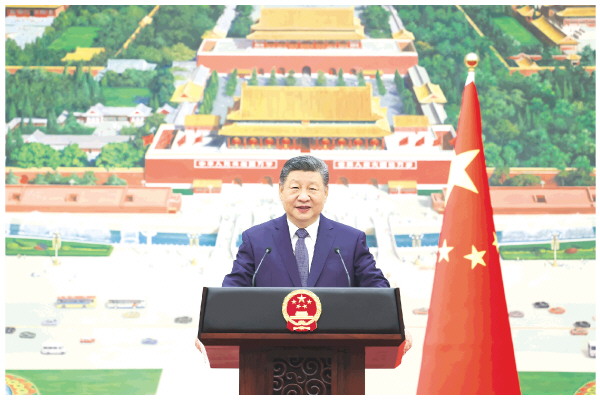 习近平指出,今天的世界,百年变局加速演进,国际形势变乱交织,全球性挑战更加突出。分裂对抗、零和博弈注定没有出路,让世界重回丛林法则不得人心,同球共济、团结合作才是唯一正确选择。我提出全球治理倡议,旨在推动构建更加公正合理的全球治理体系。中国将始终站在历史正确一边,以人民之心为心、以天下之利为利,同各国一道推动构建人类命运共同体。