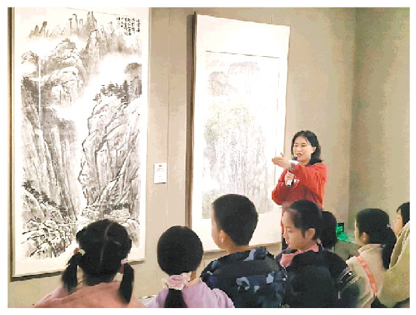 观众在导览员的带领下观展。记者韦莎妮娜 摄