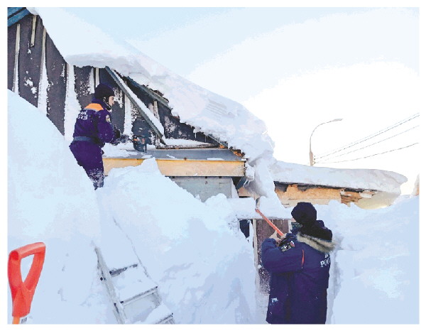 1月19日,在俄罗斯堪察加边疆区首府堪察加彼得罗巴甫洛夫斯克市,工作人员在清理积雪。