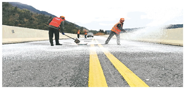 21日清晨,针对已出现的道路结冰情况,各县级公路养护中心立即启动应急预案,抢险人员第一时间赶赴结冰路段。