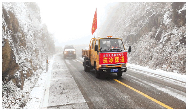 本报讯(记者李忠波 通讯员邓琳 曹文郁)1月21日,受寒潮影响,全州县部分高寒山区路段出现结冰现象,省道301线天湖路段交通安全风险上升,该县迅速统筹各方力量细化防控举措,全力守护群众生命财产安全。