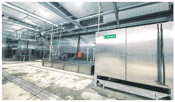 改造一新的桂林食品公司甲山屠宰场车间一角。