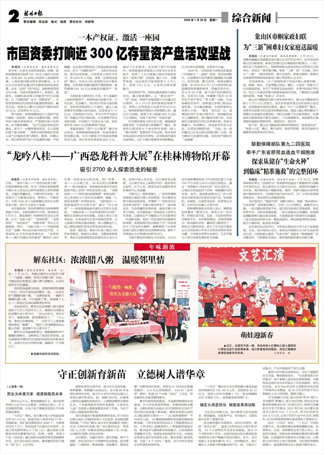 一本产权证,激活一座园 市国资委打响近300亿存量资产盘活攻坚战   本报讯(记者周文琼 通讯员曾为之  蔡召雄)记者从市国资委获悉,近期,桂林园博园成功取得722.29亩土地的合法权证,完成463.24亩核心经营性土地划转申请,土地权属问题实现实质性解决,5.9亿元历史债务也通过科学施策得到妥善处置。这本“迟到”的产权证,是桂林国资国企在市委、市政府坚强领导下,系统化、创新性、突破性盘活庞大存量资产的生动缩影。让“沉睡资源”变为“活跃资本”,市国资委持续优化国有资本配置取得成效。截至目前,桂林市已累计完成资产确权盘活20亿元,回笼资金15亿元。